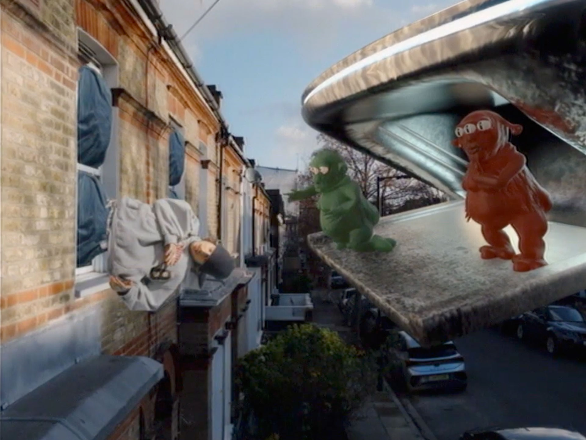 With a number of guest appearances from surreal and endearing characters — including scouse aliens, Doreen the flowershop keeper, and a baby that hatches from a discarded pair of jeans — the world is whimsical, offbeat, and quietly emotional. Beneath the humour lies a subtle exploration of value, reuse, and transformation, echoing Samuels’ sustainable design ethos.