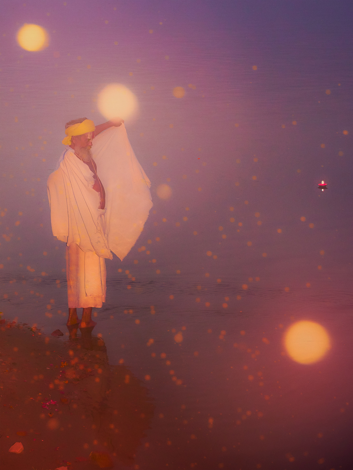 Sacred Place grows out of this tension. The project marks Heller’s return to Vrindavan, one of the holiest sites in the Krishna tradition and a place imprinted onto his childhood imagination. But the series is not a sentimental journey; it is a self-aware re‑entry. Heller photographs with a mixture of reverence, curiosity, and critical subtlety, allowing memory, spiritual history, and contemporary reality to coexist without forcing them into resolution.