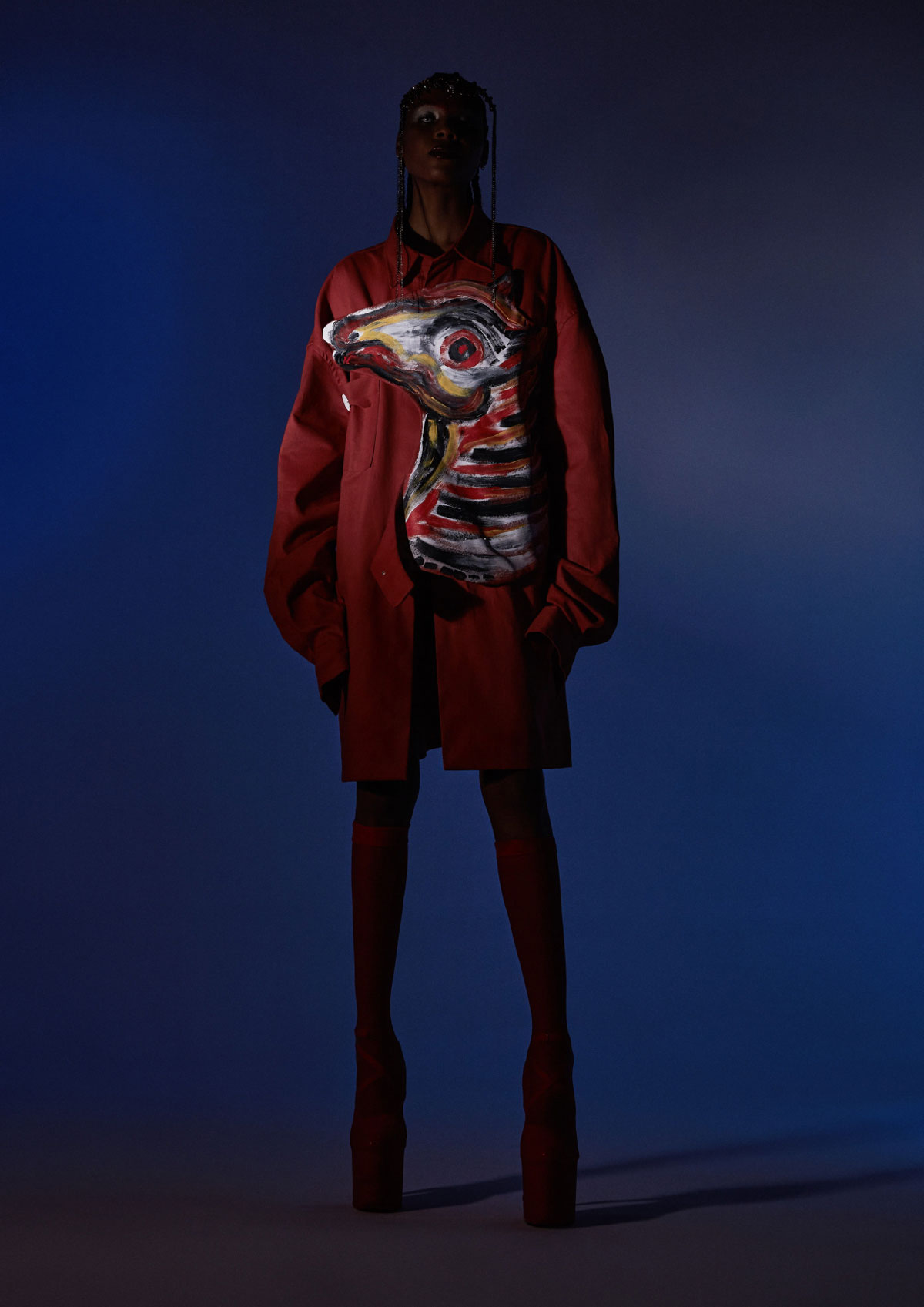 AA: Sim. E é curioso ouvir você falar da Oficina. Eu tinha um desejo muito grande de estudar moda e estudar arte. Talvez abraçar as duas coisas. Eu não pensava ativamente nessa intersecção, mas ela acabou fazendo parte da minha produção atual. Aquela experiência, de alguma forma, gerou diversas questões e curiosidades e uma vontade de investigar a vida a partir desse processo criativo. O sistema hegemônico acaba separando a arte da moda, mas ambas estão num lugar de performance, de se expor, de visualidade. A moda foi o meu primeiro “ganha pão”. Então, foi um processo não só de compreensão da minha própria produção, mas um lugar de sobrevivência.