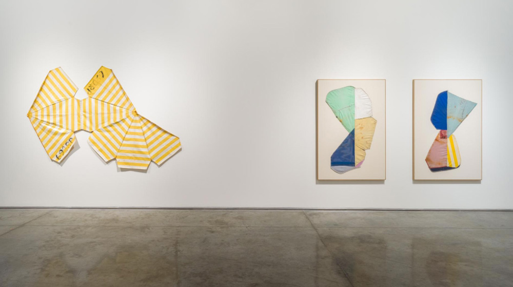 Em uma de nossas muitas conversas, Zé se descreveu como coautor de todas as suas obras. Seu reconhecimento das marcas que as pessoas deixam nos materiais com os quais interagem — pela cidade, pela vida — é profundamente comovente. Seu processo de tecer, montar e compor com esses vestígios conecta mundos, elementos e pessoas. Em Araruama, sacos de gelo e capas plásticas de mesa perdem suas identidades, transformando-se em outra coisa. Tornam-se repositórios de memória — lembretes tangíveis de vidas vividas à margem. Essas texturas, moldadas pelo tempo e pela experiência humana, tornam-se guardiãs da memória. Elas me lembram Asterisms, de Gabriel Orozco, onde materiais descartados são transformados em obras abstratas, porém profundamente emocionais. De modo semelhante, a série de paisagens de Zé, feita a partir de restos de Havaianas e fita adesiva, se lê como poesia visual — uma ode à beleza estratificada e à precariedade do Rio de Janeiro. Aqui, a beleza não está na forma, mas no gesto de torná-la visível.