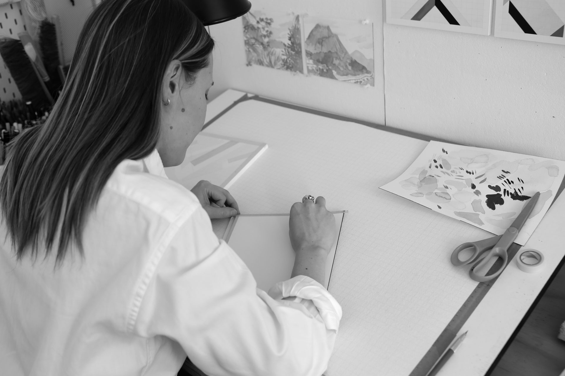 Acredito profundamente na fisicalidade da criação, no envolvimento tátil entre a mão e o material. Quando trabalho, tento ficar longe de dispositivos o máximo possível, permitindo a lentidão, a precisão e a intuição. Cada pintura começa com uma grade desenhada à mão, uma base a partir da qual a forma emerge. Minhas paletas de cores são extraídas das cidades do meu passado e mudam de acordo com as estações do ano.