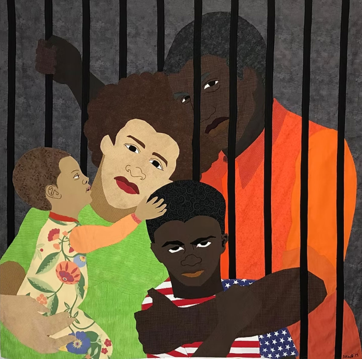 Dawn Williams Boyd, Incarceration, 2019. Tecidos variados, linhas de bordado em algodão e lã.