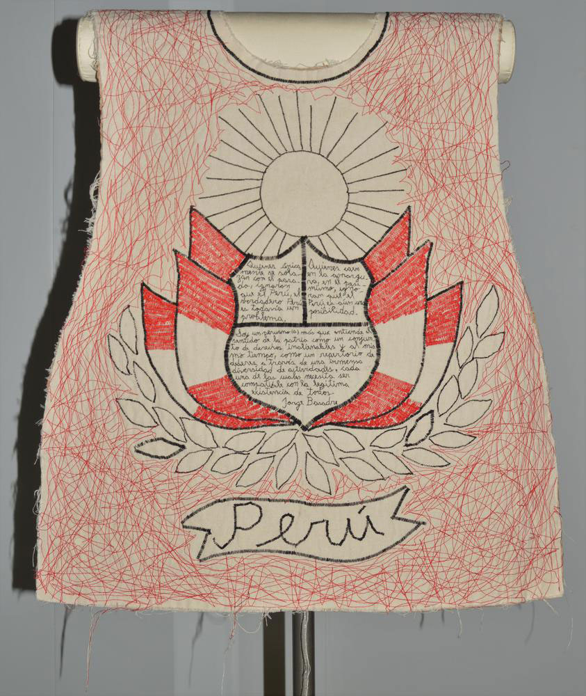 “Aqueles que se preocupam apenas com o passado ignoram que o Peru — o Peru real — ainda é um problema. Aqueles que caem no amargor e no pessimismo ignoram que o Peru ainda é uma possibilidade.” Ao reverter a linguagem visual presente no escudo da bandeira, a obra critica a celebração nacional, reconhecendo suas potencialidades sem apagar os conflitos.