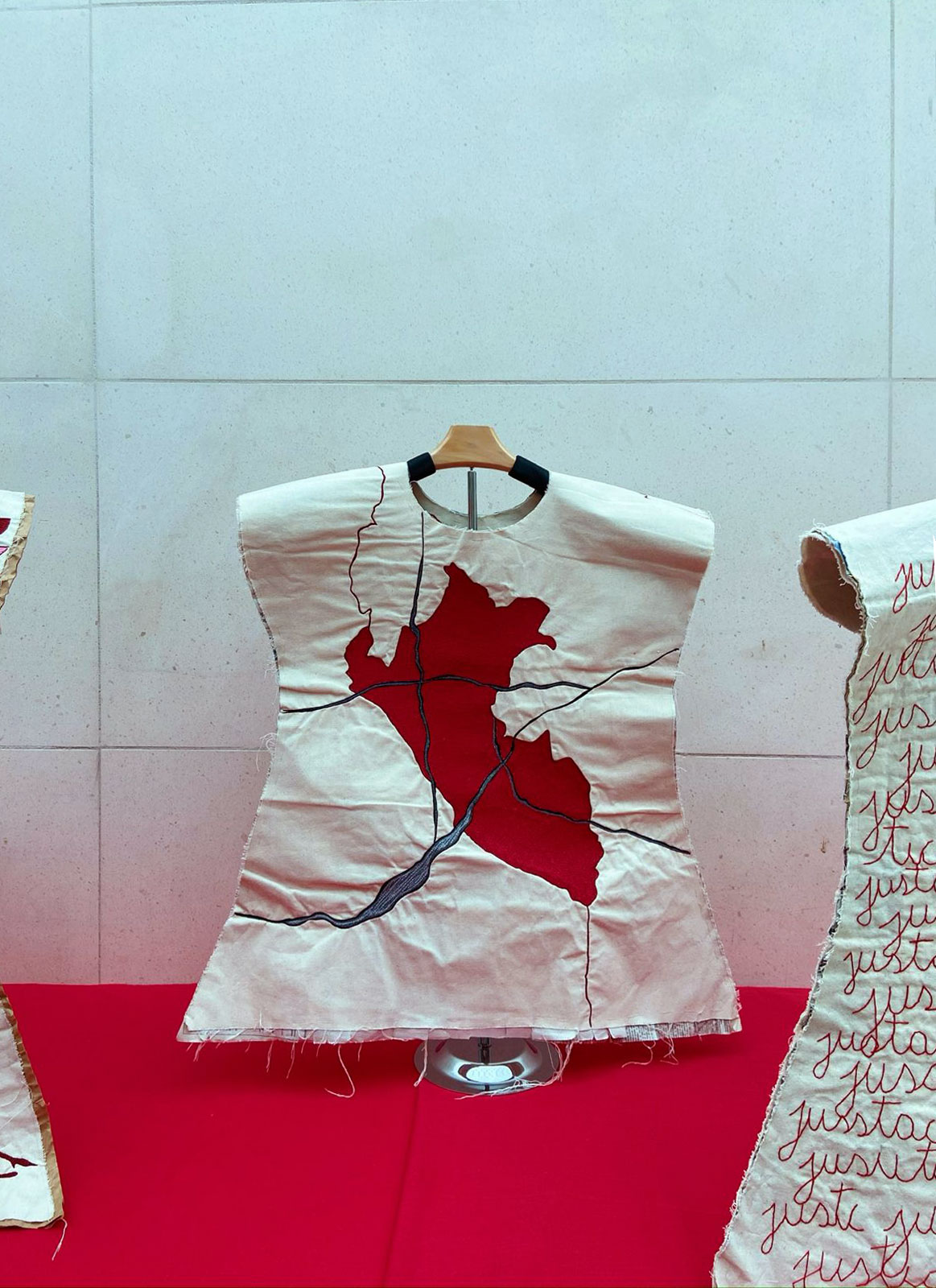Embora a costura e os têxteis estivessem profundamente ligados à sua história familiar e à ancestralidade aimara, Apaza logo percebeu que esses tecidos também carregam narrativas de silêncio, violência e poder. Arequipa é a segunda cidade do Peru com os maiores índices de violência doméstica, com quase 77% das vítimas sendo mulheres. A transmissão da tradição de uma geração para outra não é homogênea nem um presente embrulhado de forma simples e unilateral. Quando Apaza herdou a máquina de costura de sua mãe, ela a viu como uma oportunidade de romper o silêncio — de costurar como uma nova forma de conhecimento e crítica social.