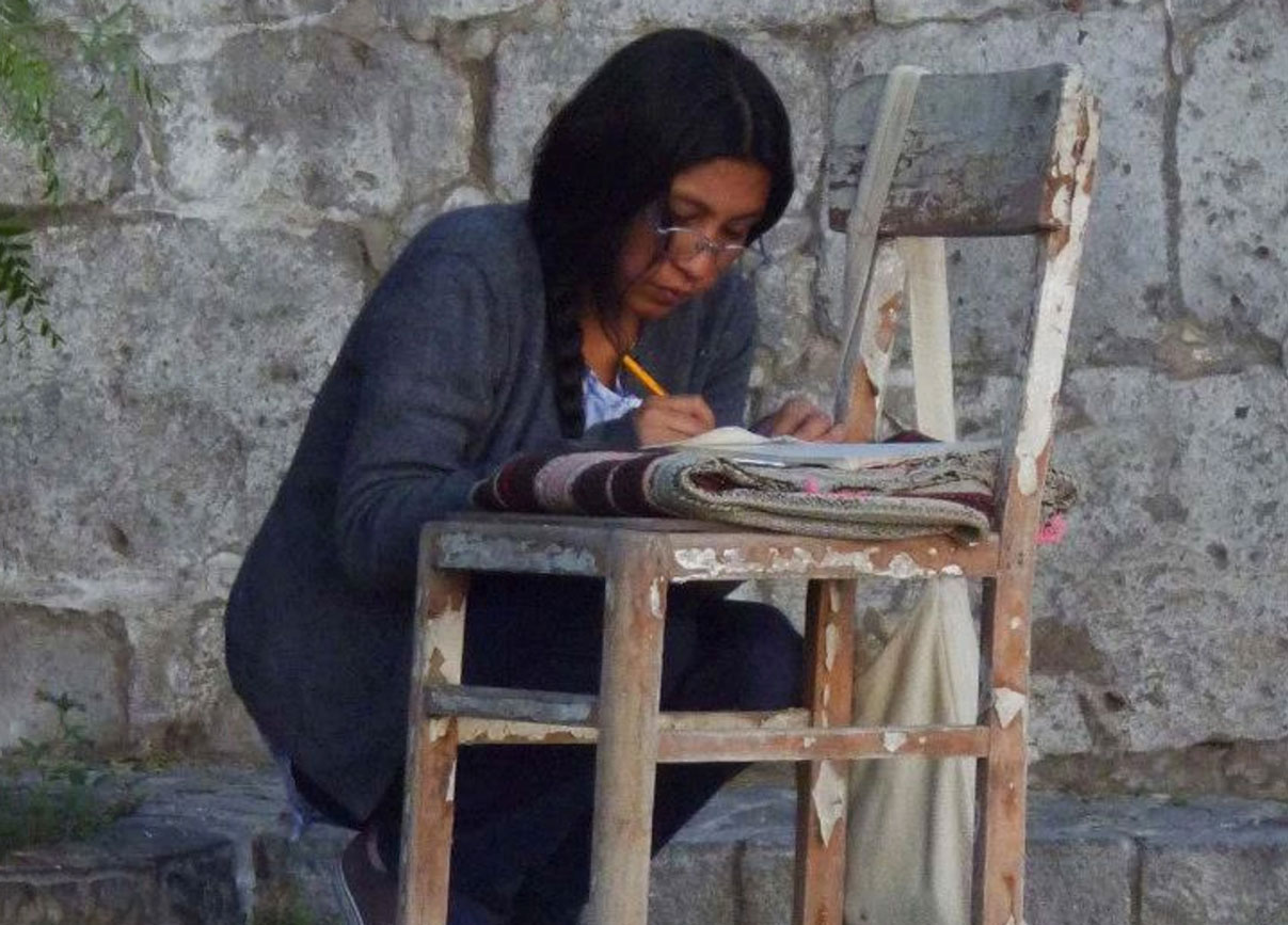 Na Escuela Nacional de Arte Carlos Baca Flor, em Arequipa, Nereida não tinha recursos financeiros para comprar o conjunto clássico de materiais de pintura exigidos para os trabalhos acadêmicos. O fio surgiu, então, como solução — não apenas por ser um material mais acessível em sua própria casa, mas também pelo profundo significado cultural. Ela começou a tecer telas, e logo nasceram os cuadernos.